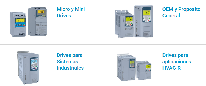 Con décadas de experiencia en el desarrollo de productos electrónicos, WEG ofrece soluciones de alta performance y eficiencia en accionamientos para motores eléctricos industriales. Desarrollados de acuerdo con normas internacionales, los drives WEG ofrecen flexibilidad e innovación para aumentar la productividad y la confiabilidad de procesos